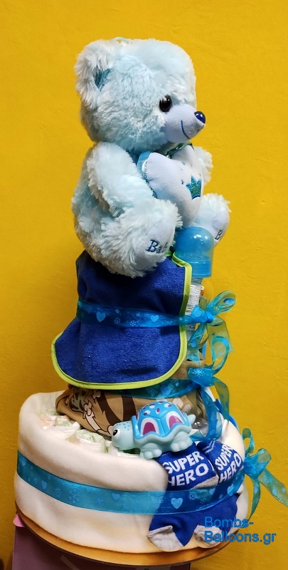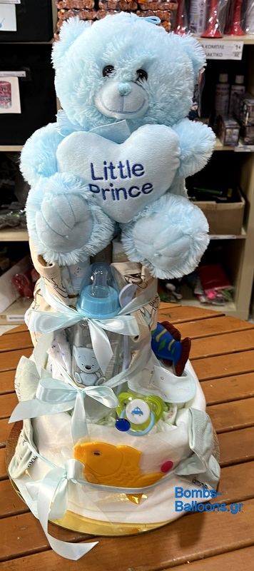 Περιλαμβάνει 30 πάνες "Babylino" νούμερο 2, λούτρινο αρκουδάκι, σελτεδάκι ή σεντονάκι αγκαλιάς ή πετσετούλα, φορμάκι-φανελάκι, σαλιάρα, μπιμπερό, παιχνιδάκι μπάνιου, αντιολισθητικό μπάνιου, πανάκι για το ρέψιμο, κουδουνίστρα ή μασητικό ή σφουγγαράκι ή σαπουνάκι, πιπίλα, κάλτσες και μωρομάντηλα μεγάλη συσκευασία.