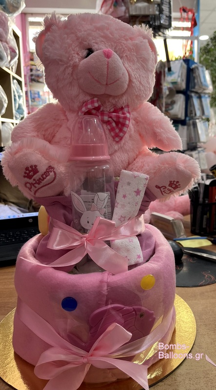 Περιλαμβάνει 25 πάνες νούμερο 2 "Babylino", λούτρινο αρκουδάκι, σελτεδάκι ή σεντονάκι αγκαλιάς ή πετσετούλα, φορμάκι-φανελάκι, μπιμπερό, παιχνιδάκι μπάνιου, αντιολισθητικό μπάνιου, πανάκι για το ρέψιμο, κουδουνίστρα ή μασητικό ή σφουγγαράκι.